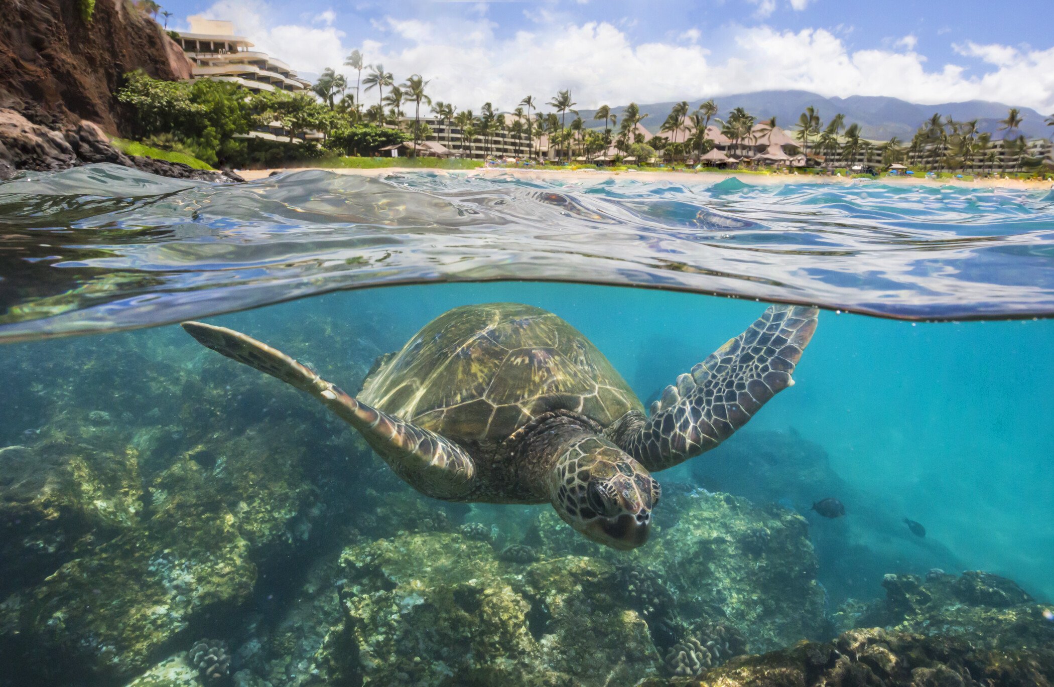 The Sheraton sits directly on Ka’anapali Beach at iconic Black Rock — which means some of the best snorkeling in Maui is literally steps from your room. This is the kind of resort where mornings start with sea turtles and afternoons end with cliff diving ceremonies at sunset.